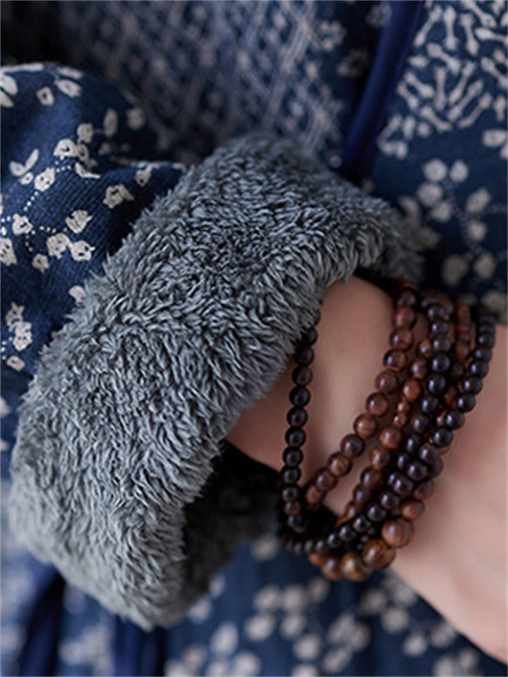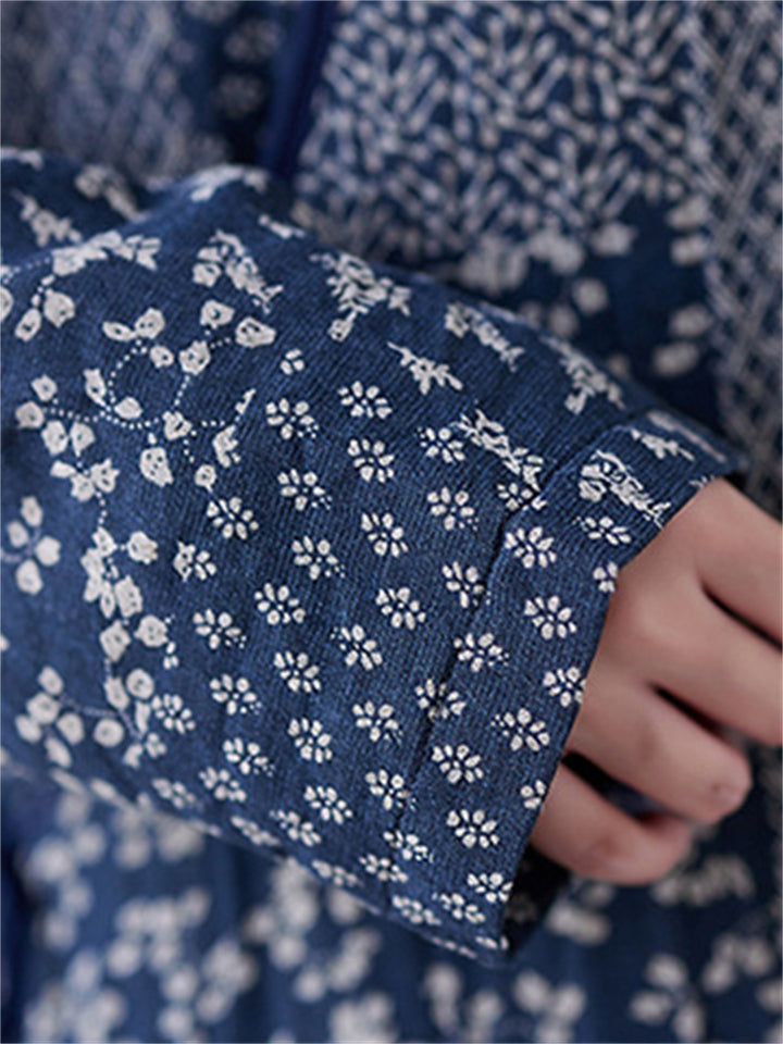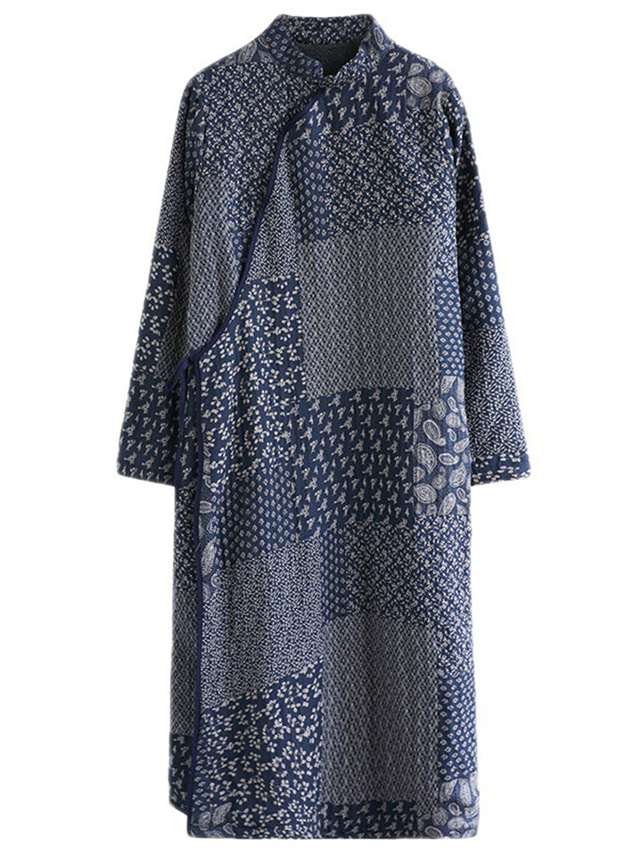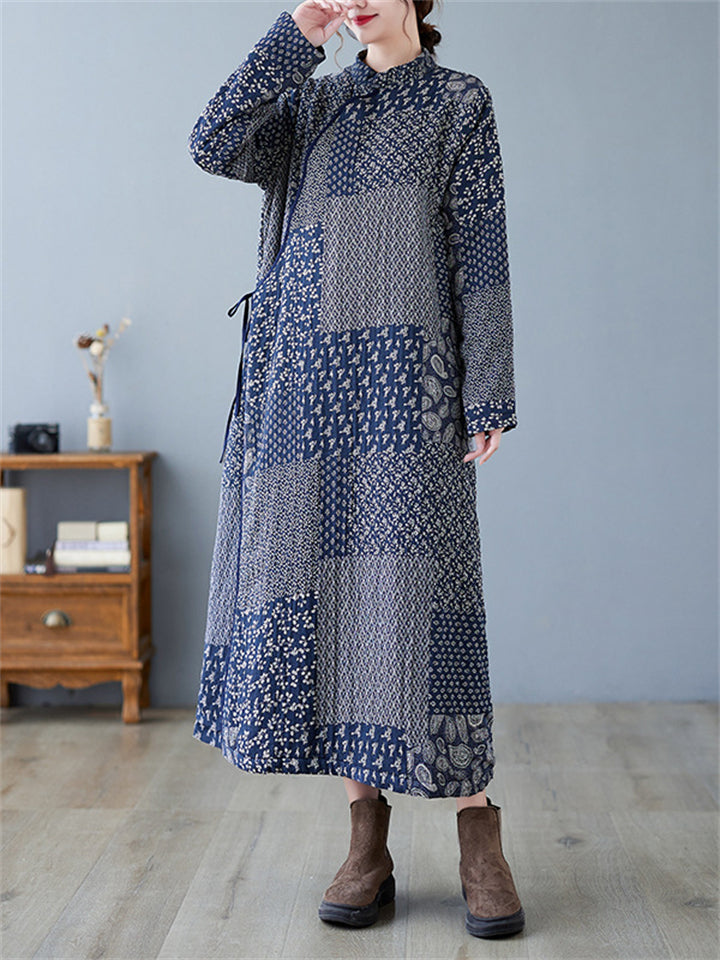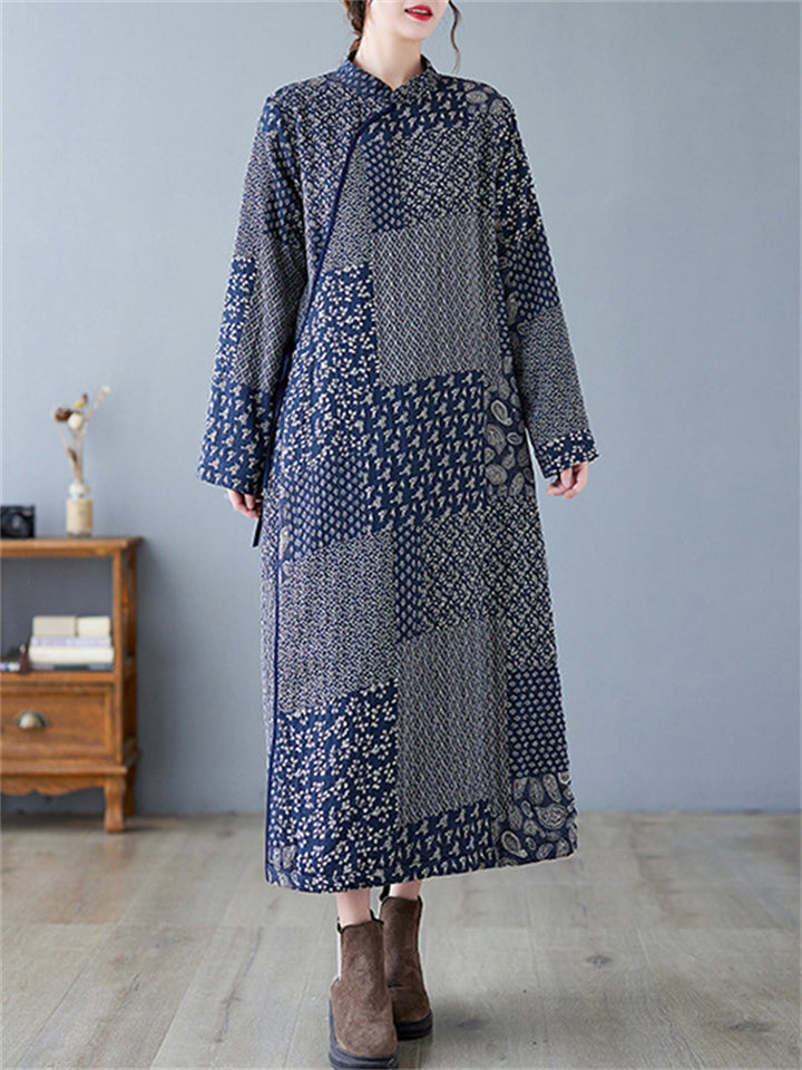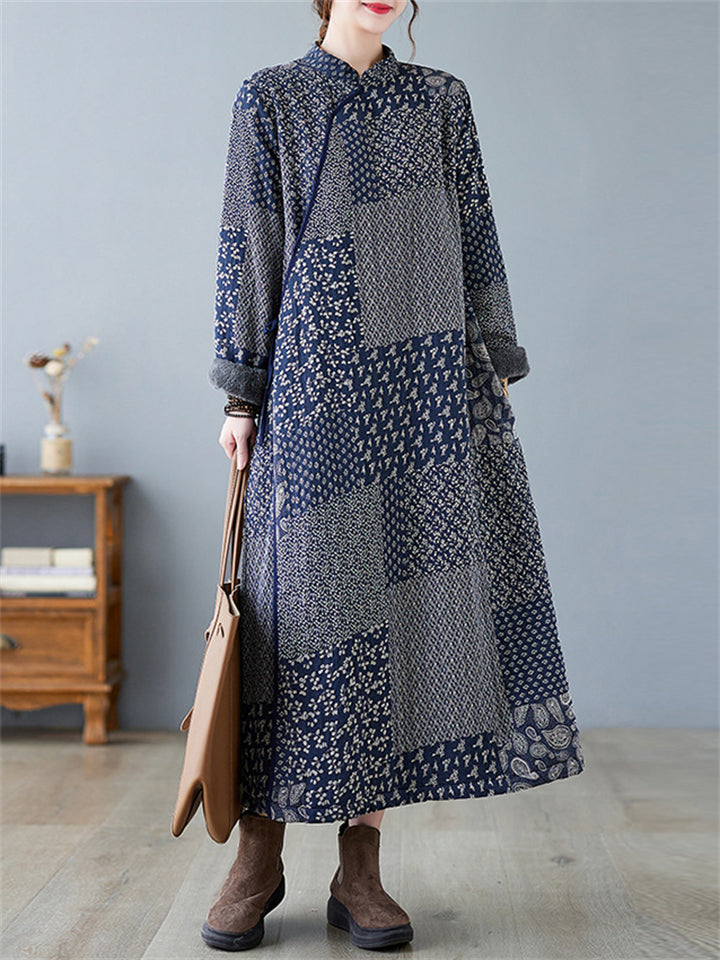 Women's Vintage Square Print Plush Liner Straight Long Dress